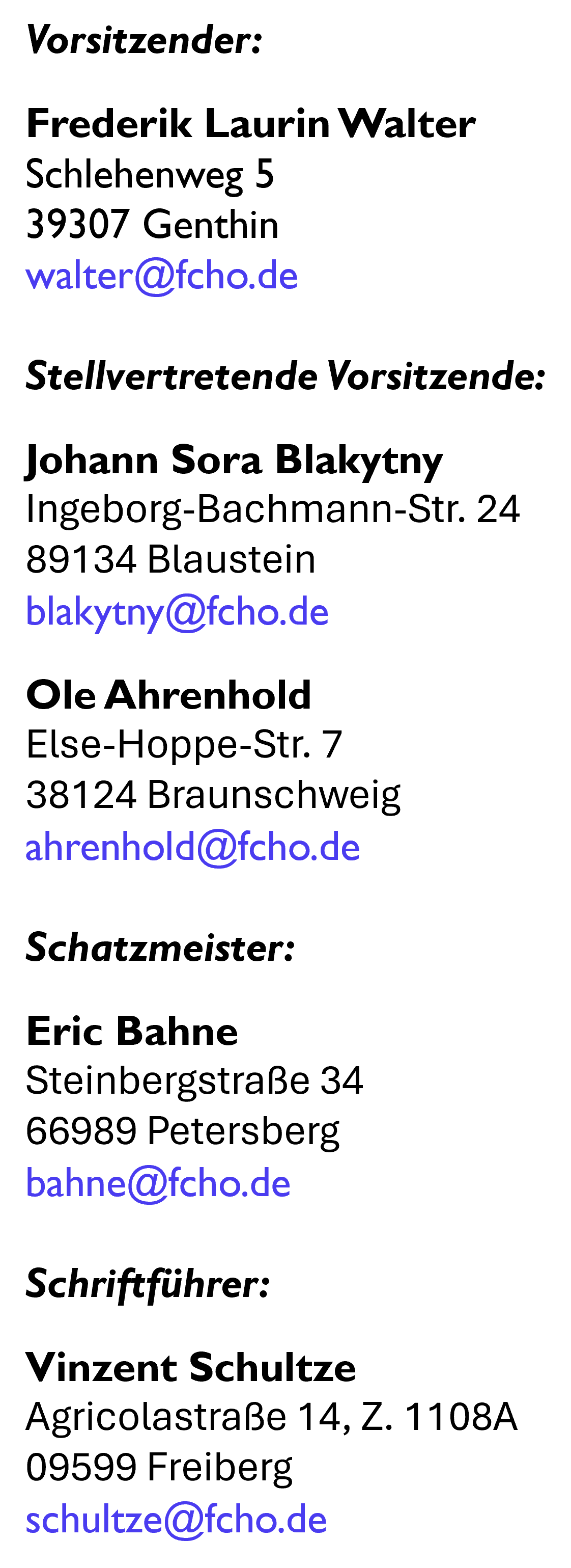 Der Förderverein Chemie-Olympiade e.V. (FChO) ist als ausschließlich und unmittelbar gemeinnützig im Sinne der §§ 51 ff. AO anerkannt. Vereinssitz ist Kiel (VR-Nr. 3549 im Vereinsregister des Amtsgericht Kiel).